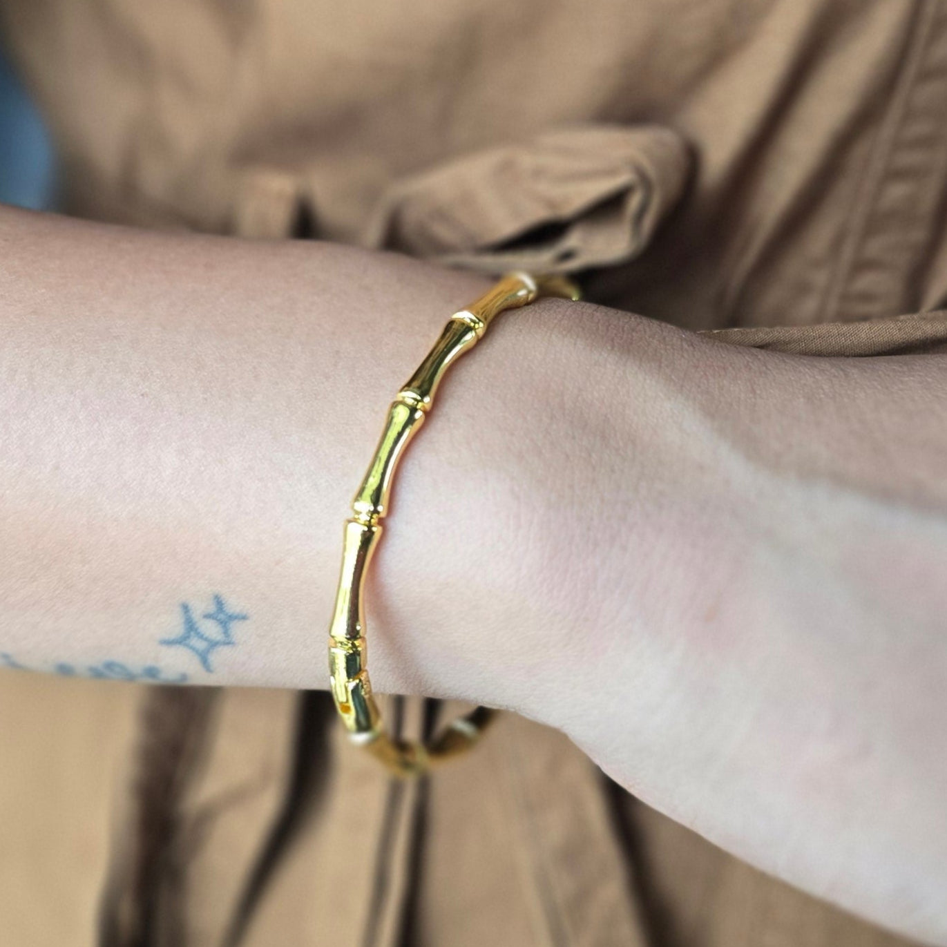 Rooted in nature, styled for today — our Bamboo Bliss Bracelet brings the charm of bamboo in a bold golden form. Its sleek, sculpted segments mimic organic bamboo joints, giving you a unique blend of minimalism and edge.