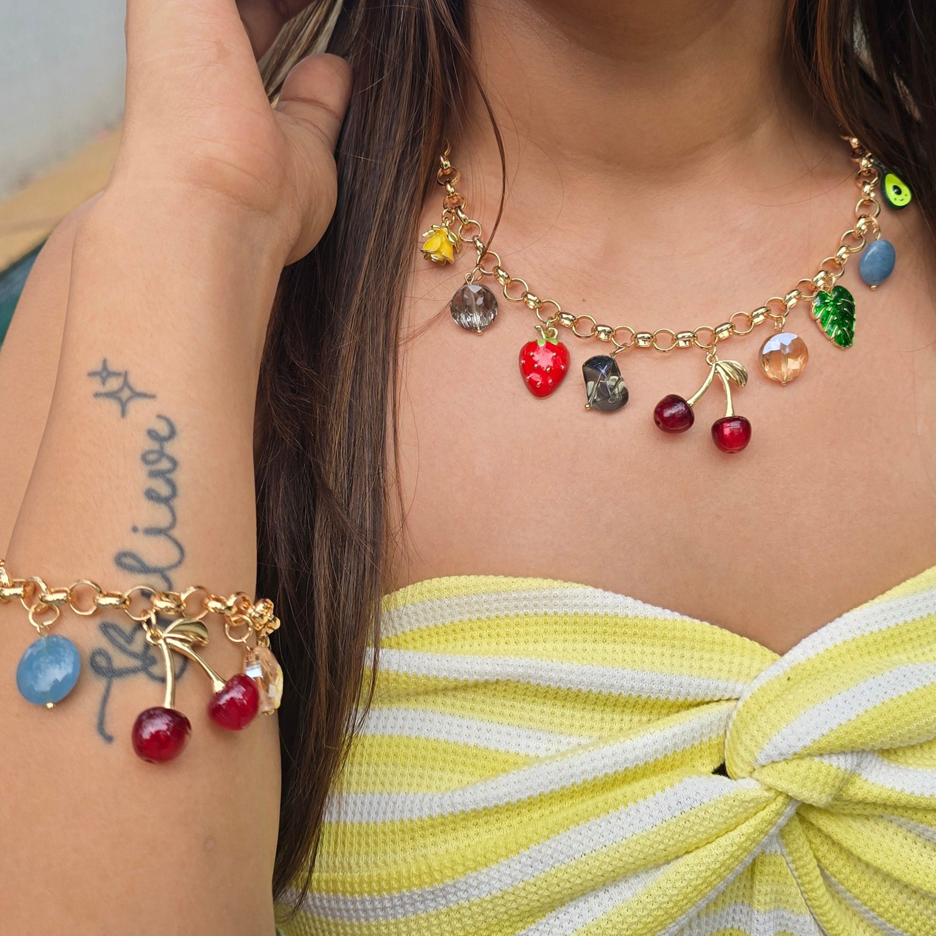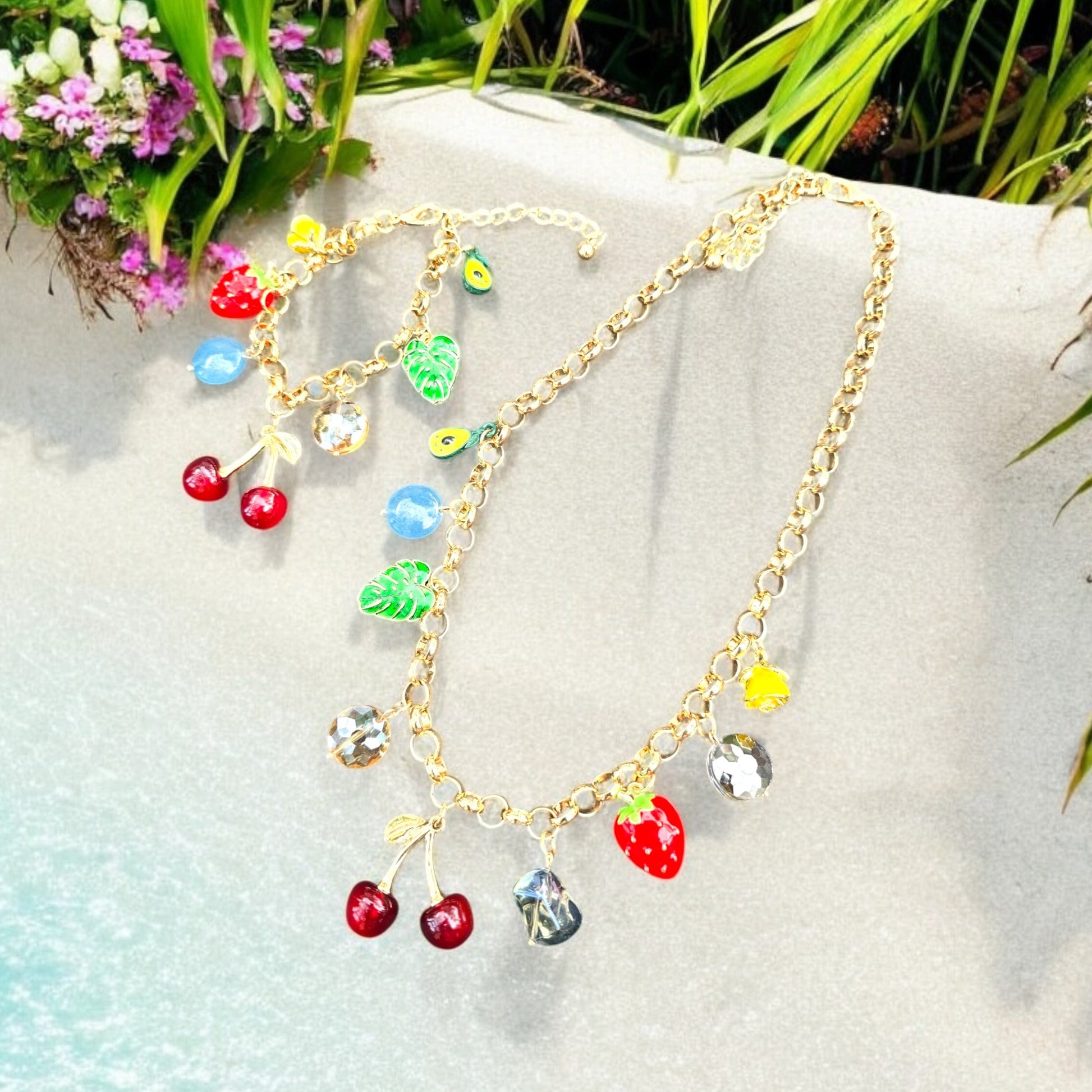 Bursting with fruity fun, this charm set features cherries, strawberries, avocados, and tropical leaves in a vibrant palette—bringing a fresh, playful energy to any outfit.