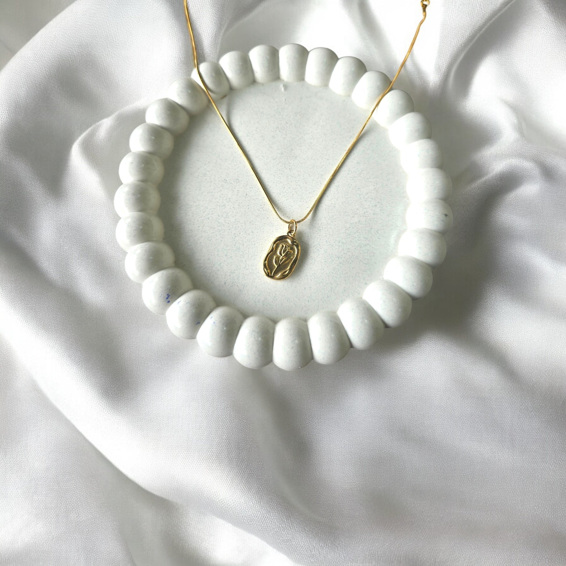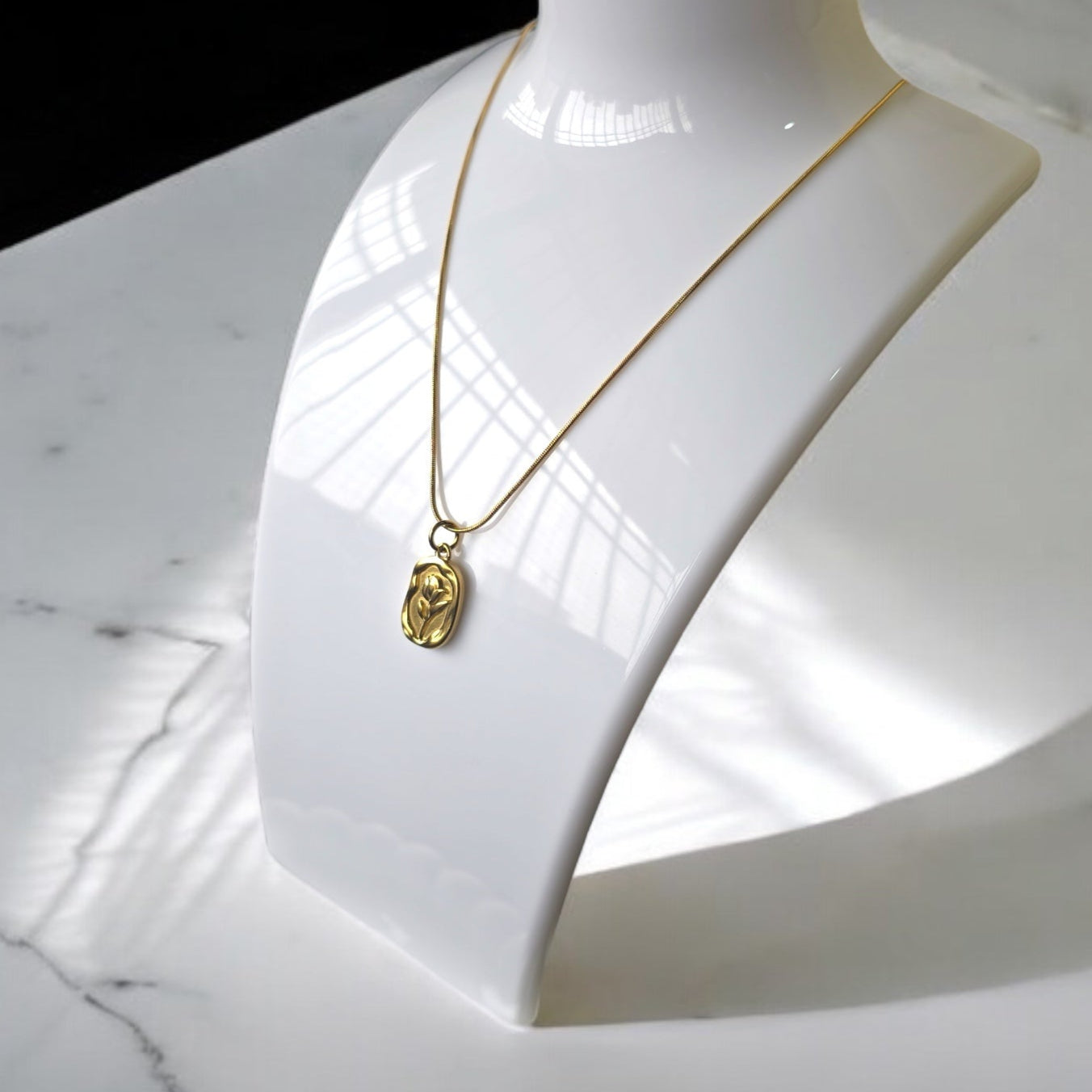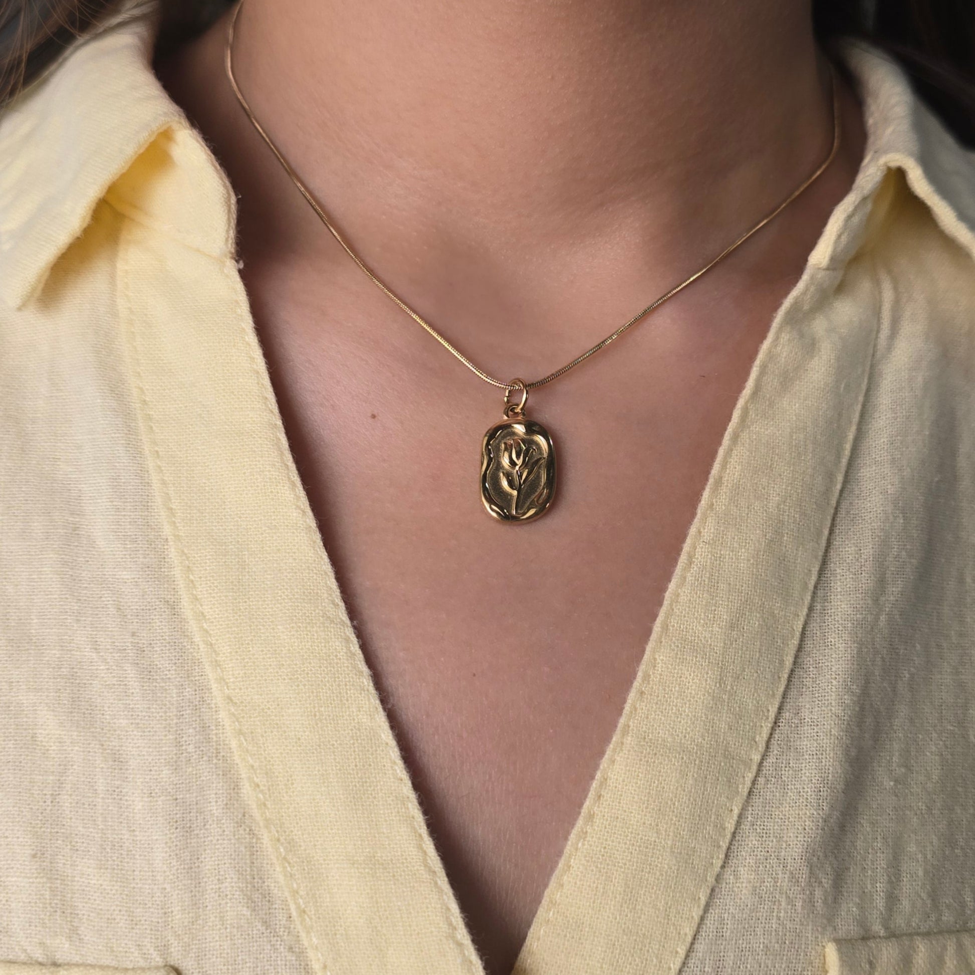 A dainty gold-plated necklace with an abstract tulip charm — elegant, timeless, and perfect for everyday wear.