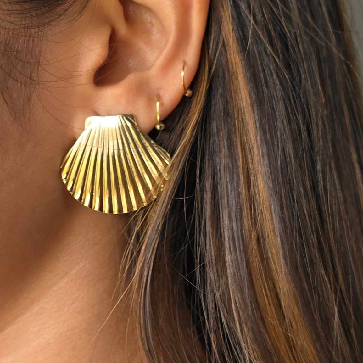 Bold yet breezy, these shell-inspired gold earrings bring a touch of seaside charm to your everyday glam.