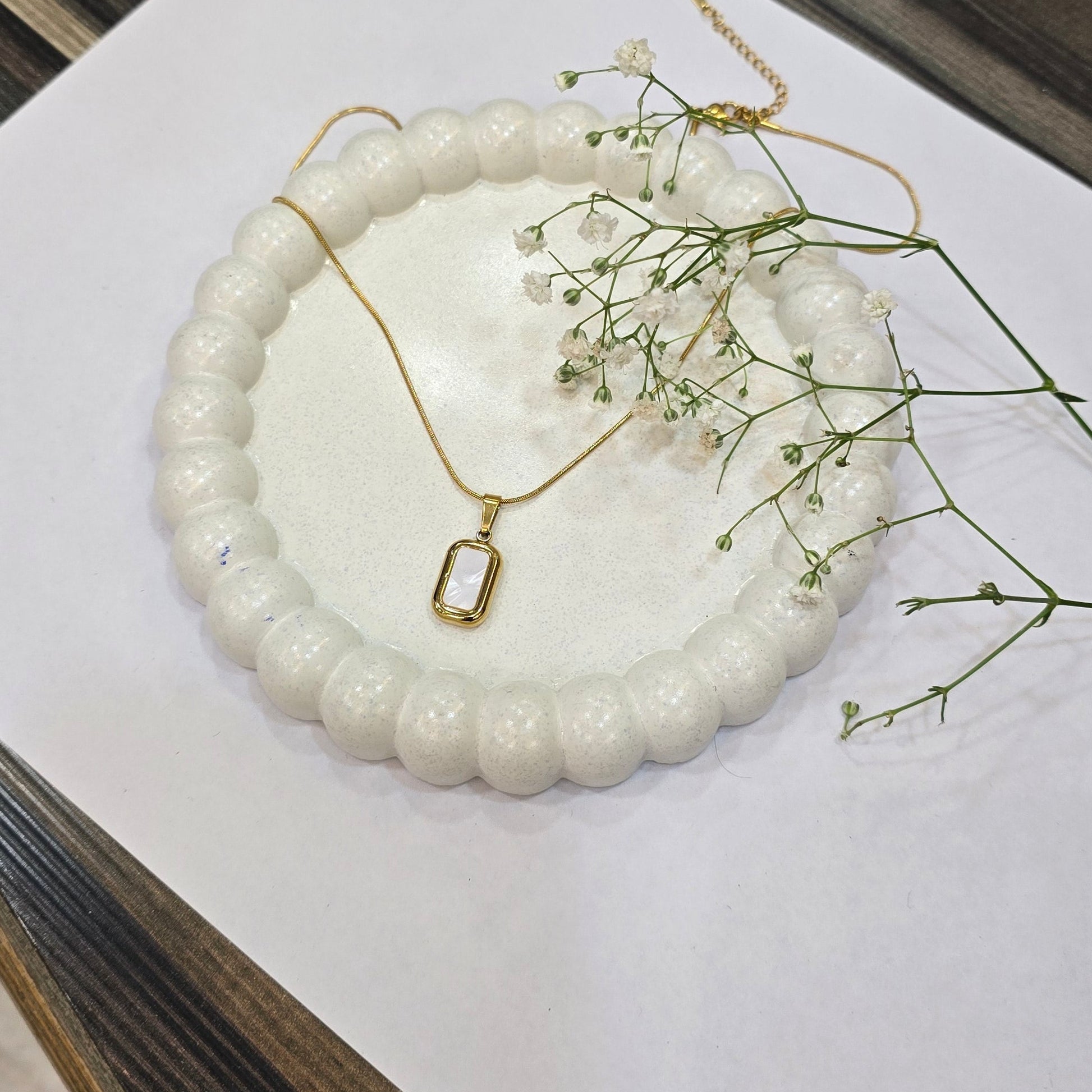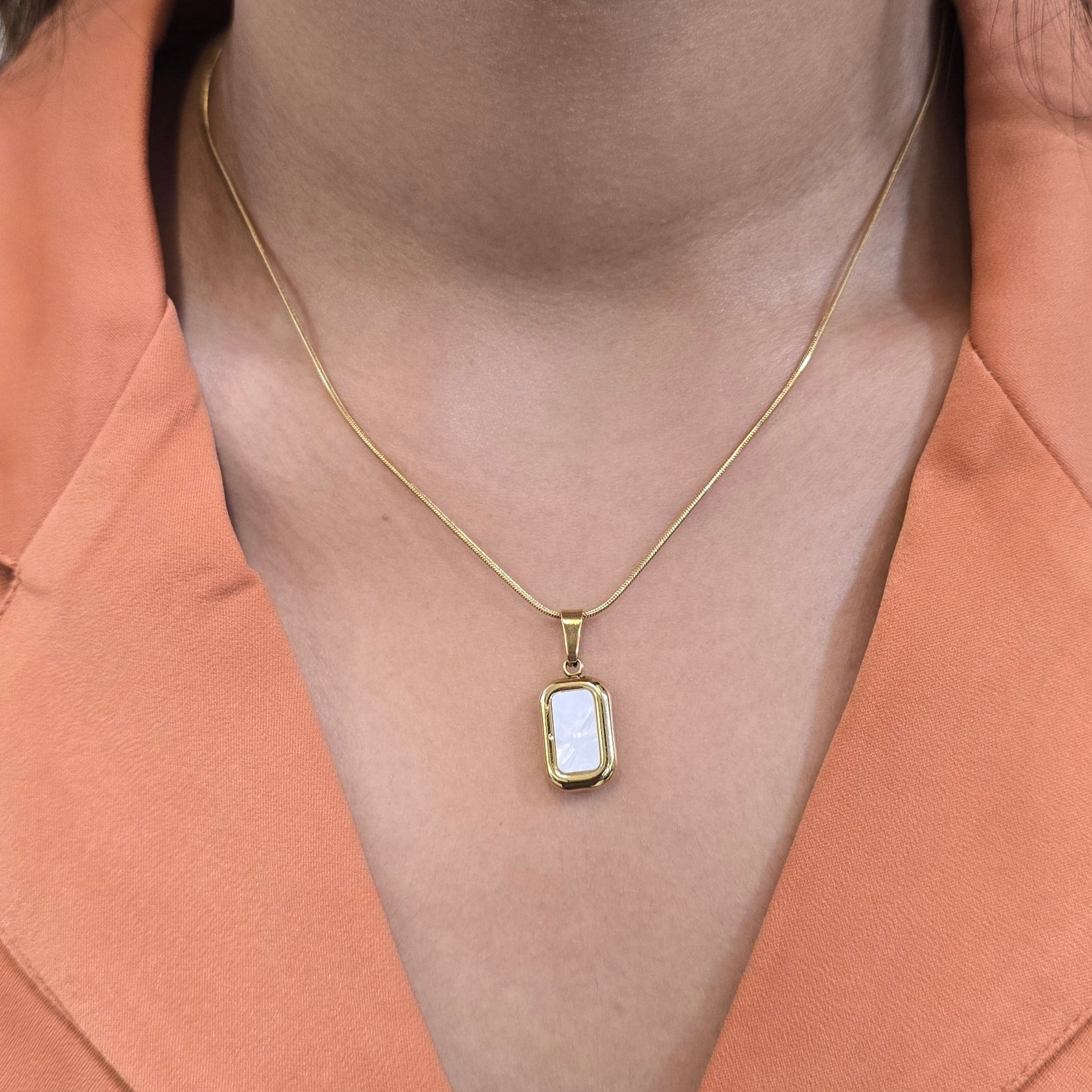 A timeless pendant featuring a soft, iridescent MOTHER OF PEARL in gold- minimal, graceful, and made to glow with you.