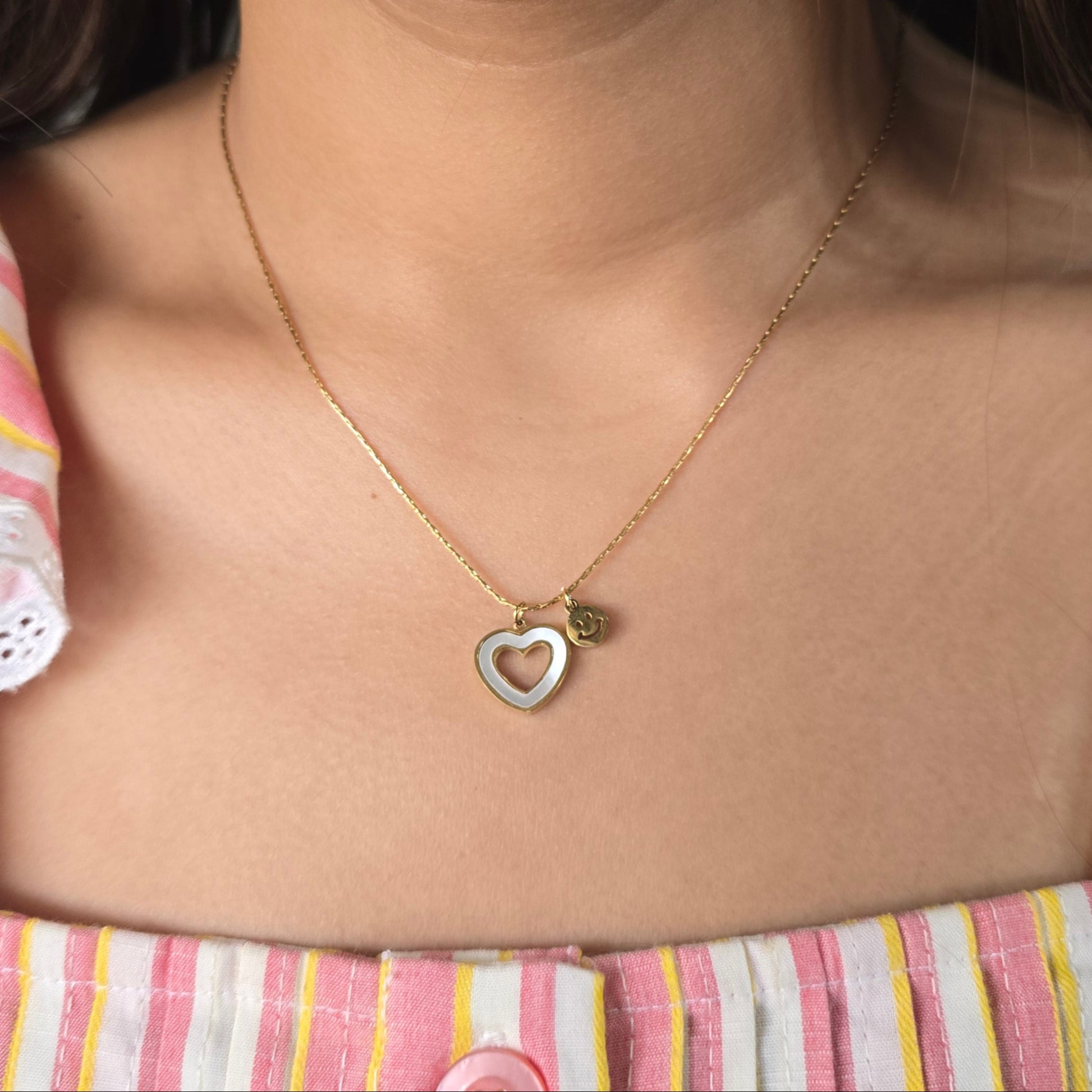 Sweet, subtle, and full of meaning—this open heart necklace is designed for the minimalist romantic. Featuring a delicate gold chain, a hollow heart charm, and a tiny engraved disc, it’s a whisper of love you can wear every day. Lightweight and effortlessly versatile, it layers beautifully or stands gracefully on its own.