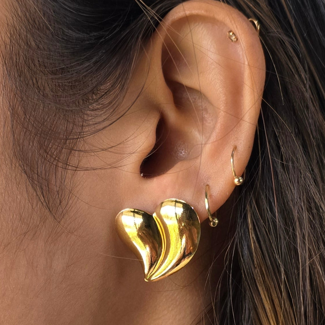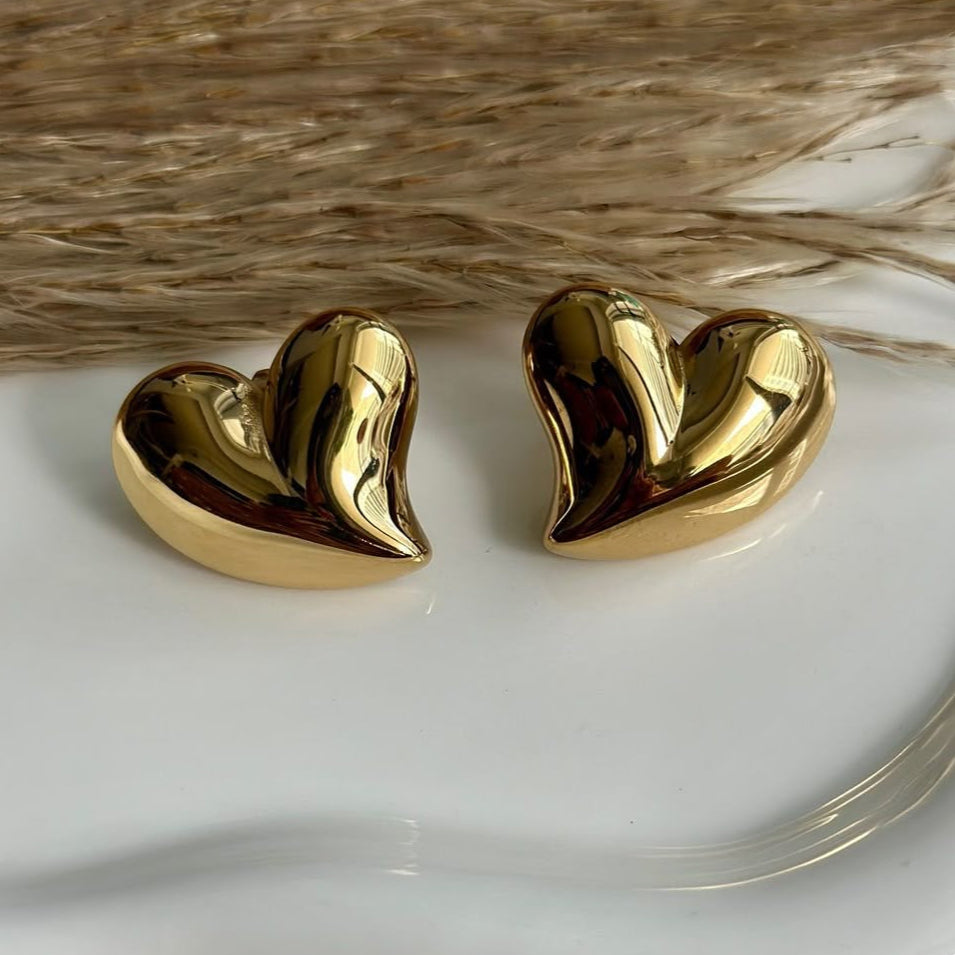 Shiny, sculpted heart studs that glow with love and luxe. Lightweight, anti-tarnish, and perfect to add golden charm to any look—day or night.