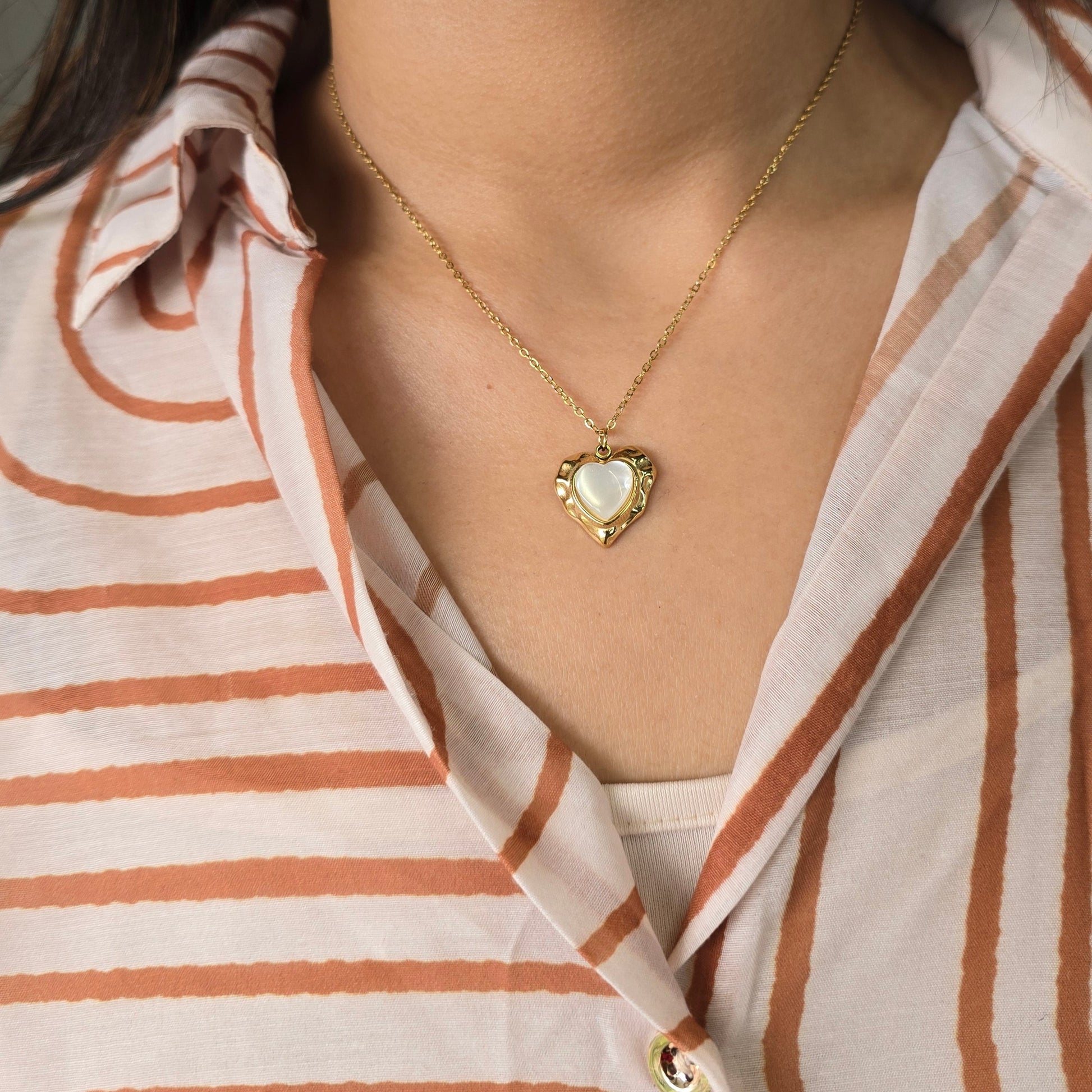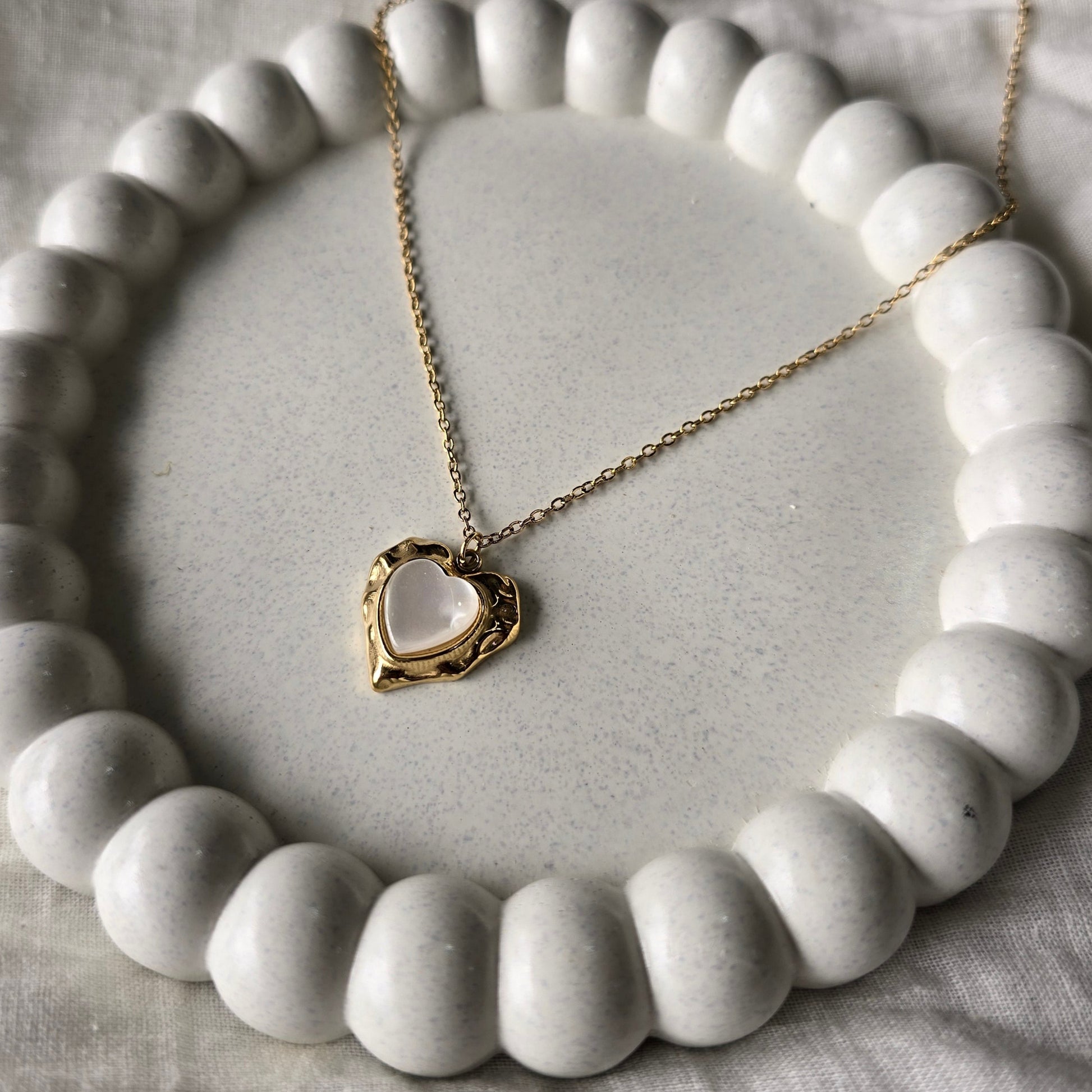 MOP pendant set in a sculpted gold frame, perfect for soft, dreamy styling.
